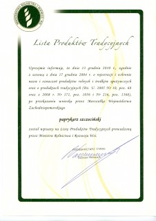 Paprykarz szczeciński został wpisany na Listę Produktów Tradycyjnych Ministerstwa Rolnictwa i Rozwoju Wsi.