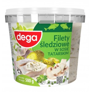 Grubo krojone, pyszne i aromatyczne filety śledziowe w sosie tatarskim. Soczysty śledzik i aromatyczny sos z marynowanym ogórkiem, cebulką i pieczarką - to ulubiony smak Polaków! Idealna propozycja na święta oraz weekendowe spotkania z rodziną.