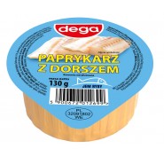 Paprykarz na bazie ryżu, koncentratu pomidorowego, rozdrobnionego dorsza i łososia, cebulki oraz przypraw. Pyszny i aromatyczny dzięki starannie dobranej mieszance przypraw. Idealna przekąska, doskonały do kanapek, chrupkiego pieczywa oraz jako baza do naleśników i tortilli.