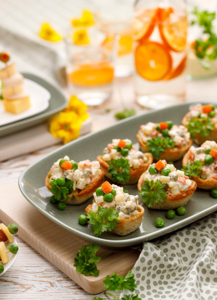 Sałatka jarzynowa. Zawiera 69 % warzyw. Główne składniki: ziemniaki, marchew, olej rzepakowy, groszek 12 %, woda, cukier, ogórek, przyprawy (zawierają gorczyce), szczypior, sól, ocet spirytusowy, skrobia modyfikowana, śmietana w proszku (z mleka); żółtko jaja w proszku, regulatory kwasowości: kwas mlekowy, kwas cytrynowy; substancje konserwujące: sorbinian potasu, benzoesan sodu; ekstrakt kopru, aromaty.