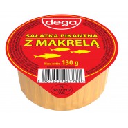 Sałatka na bazie ryb morskich, w tym makreli oraz warzyw takich jak marchew, seler, cebula, pietruszka z dodatkiem koncentratu pomidorowego i przypraw. Produkt sterylizowany. Może zawierać jaja, mleko, soję, gorczycę.