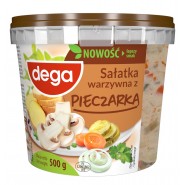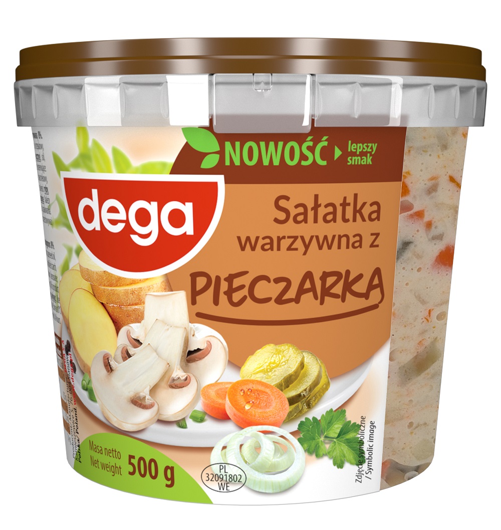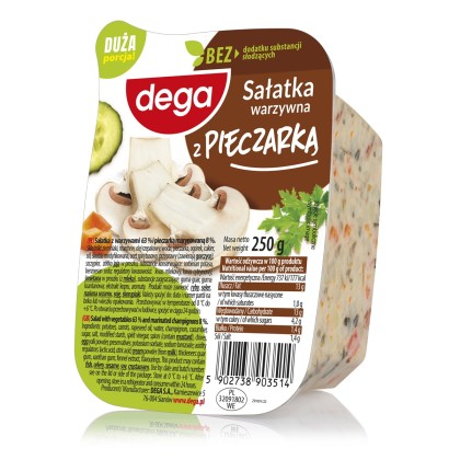 Sałatka z warzywami 63 % i pieczarką marynowaną 8 %. Główne składniki: ziemniaki, marchew, olej rzepakowy, woda, pieczarka, ogórek, cukier, sól, skrobia modyfikowana, ocet spirytusowy, przyprawy (zawierają gorczycę), szczypior, żółtko jaja w proszku, substancje konserwujące: sorbinian potasu, benzoesan sodu; regulatory kwasowości: kwas mlekowy, kwas cytrynowy; śmietana w proszku (z mleka); ekstrakt kopru, aromaty.